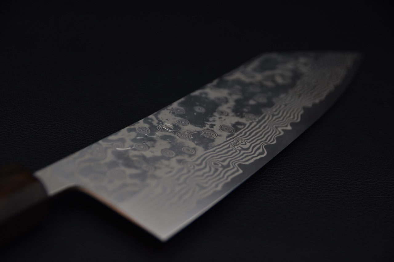 At StaySharpMTL, we use only high-performance materials to craft our blades, ensuring durability, sharpness, and precision. Our core range is made from high-carbon stainless steel, chosen for its excellent edge retention and rust resistance, making it ideal for everyday use in both the kitchen and workshop. For those seeking a premium look and feel, our Damascus steel combines multiple layers of forged steel to create blades that are not only aesthetically pleasing, but also incredibly strong and flexible. We also offer select models with a ceramic finish, which provides a smooth, ultra-durable surface to reduce friction and increase wear resistance. Each blade material is selected for its unique performance, ensuring there's a suitable option for every user.