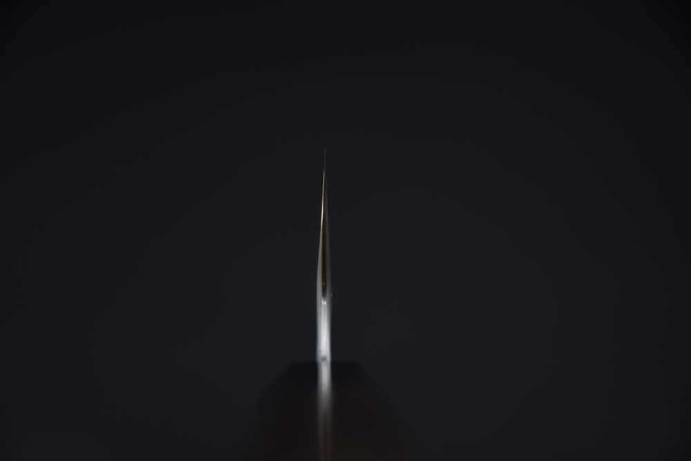 The Bunka is a general-purpose knife with a straighter edge profile than a santoku, which makes the rocking motion more difficult to perform. However, this knife is perfect for use with the push-cut or pull-cut method. The fine tip of the Bunka will give you precision and agility as it will pass through the food more easily when cutting.