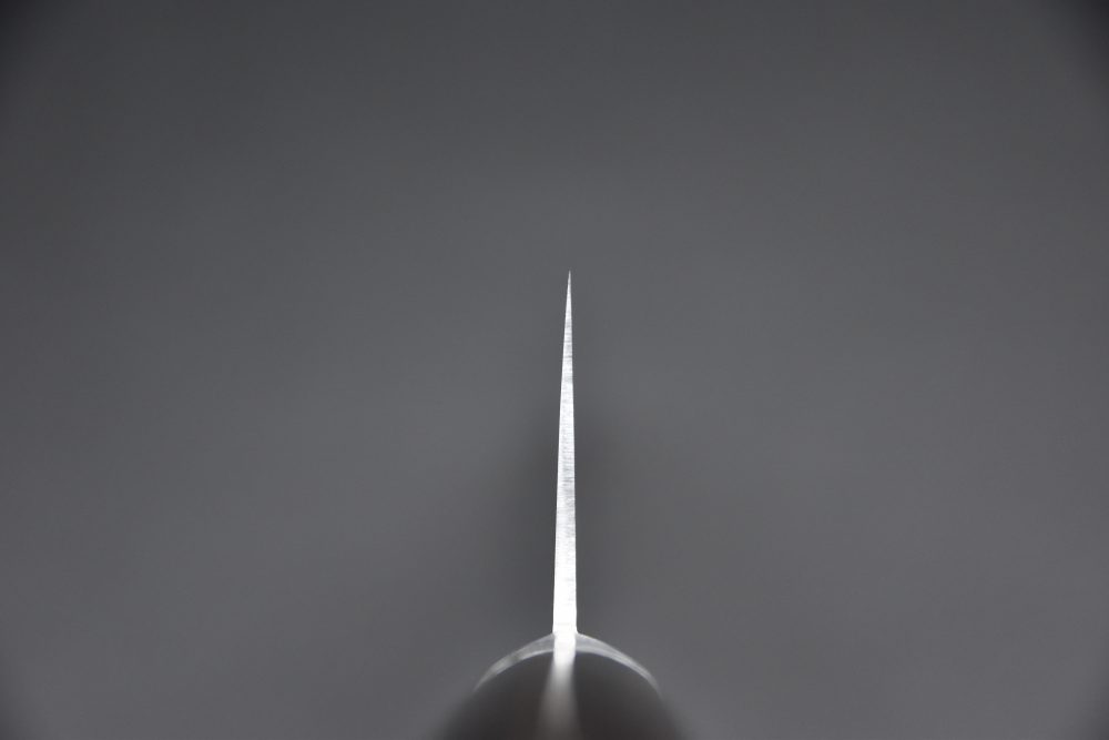 Lors de l'utilisation du Gyuto, il est crucial de veiller à ce que la lame soit parfaitement droite au moment de l'impact avec la planche à découper. Cela permet d'éviter d'endommager le tranchant du couteau, en assurant une coupe précise et uniforme tout en préservant la durabilité de la lame. Un mauvais angle d'impact peut entraîner des dommages à la lame et affecter la qualité des coupes. La lame du Gyuto est conçue en acier japonais de haute qualité, ce qui lui confère un tranchant exceptionnel et une grande résistance à l'usure. Les aciers utilisés dans la fabrication des Gyuto sont traités thermiquement à des niveaux élevés, ce qui leur permet de maintenir leur tranchant pendant une période plus longue par rapport à d'autres types de couteaux. Pour prolonger la durée de vie du Gyuto et maintenir son tranchant, nous recommandons de l’affûter régulièrement avec un fusil en céramique de qualité ou en utilisant le bloc de cuir. Pour ce qui est de l'aiguisage sur pierre, nous recommandons de le faire une ou deux fois par années pour une utilisation non professionnelle. L’aiguisage sur pierre doit être fait avec soin et précision, en respectant l'angle de la lame et en suivant les techniques appropriées. Si vous voulez, on s’en occupe via notre service d’aiguisage expert. Si votre Gyuto est fabriqué à partir d’acier oxydable, il est essentiel de prendre soin de nettoyer et de sécher correctement la lame après chaque utilisation, afin de prévenir la formation de rouille et d'autres dommages liés à l'humidité. Dans le cas où votre couteau est fait d’acier inoxydable, on vous conseille tout de même de prendre soin de celui-ci et de ne pas le mettre au lave-vaisselle par exemple.