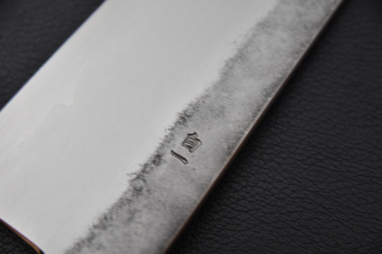 En main, les sensations sont remarquables : la lame fine glisse sans effort à travers les aliments. Forgé dans un acier traditionnel reconnu pour sa réactivité et son mordant, ce couteau conserve une netteté exceptionnelle. L’ajout d’une protection en acier inoxydable limite l’entretien, tout en gardant le caractère et l’authenticité d’un tranchant en acier au carbone. C’est un outil pensé pour durer et offrir chaque jour une expérience de coupe enthousiasmante.