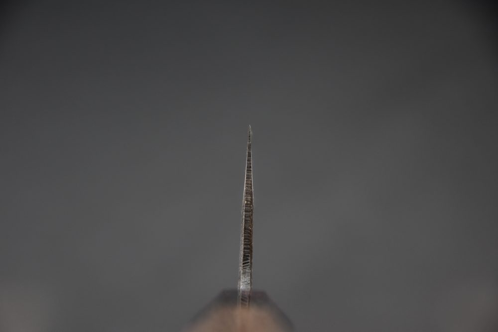Lors de l'utilisation du Gyuto, il est crucial de veiller à ce que la lame soit parfaitement droite au moment de l'impact avec la planche à découper. Cela permet d'éviter d'endommager le tranchant du couteau, en assurant une coupe précise et uniforme tout en préservant la durabilité de la lame. Un mauvais angle d'impact peut entraîner des dommages à la lame et affecter la qualité des coupes. La lame du Gyuto est conçue en acier japonais de haute qualité, ce qui lui confère un tranchant exceptionnel et une grande résistance à l'usure. Les aciers utilisés dans la fabrication des Gyuto sont traités thermiquement à des niveaux élevés, ce qui leur permet de maintenir leur tranchant pendant une période plus longue par rapport à d'autres types de couteaux. Pour prolonger la durée de vie du Gyuto et maintenir son tranchant, nous recommandons de l’affûter régulièrement avec un fusil en céramique de qualité ou en utilisant le bloc de cuir. Pour ce qui est de l'aiguisage sur pierre, nous recommandons de le faire une ou deux fois par années pour une utilisation non professionnelle. L’aiguisage sur pierre doit être fait avec soin et précision, en respectant l'angle de la lame et en suivant les techniques appropriées. Si vous voulez, on s’en occupe via notre service d’aiguisage expert. Si votre Gyuto est fabriqué à partir d’acier oxydable, il est essentiel de prendre soin de nettoyer et de sécher correctement la lame après chaque utilisation, afin de prévenir la formation de rouille et d'autres dommages liés à l'humidité. Dans le cas où votre couteau est fait d’acier inoxydable, on vous conseille tout de même de prendre soin de celui-ci et de ne pas le mettre au lave-vaisselle par exemple.