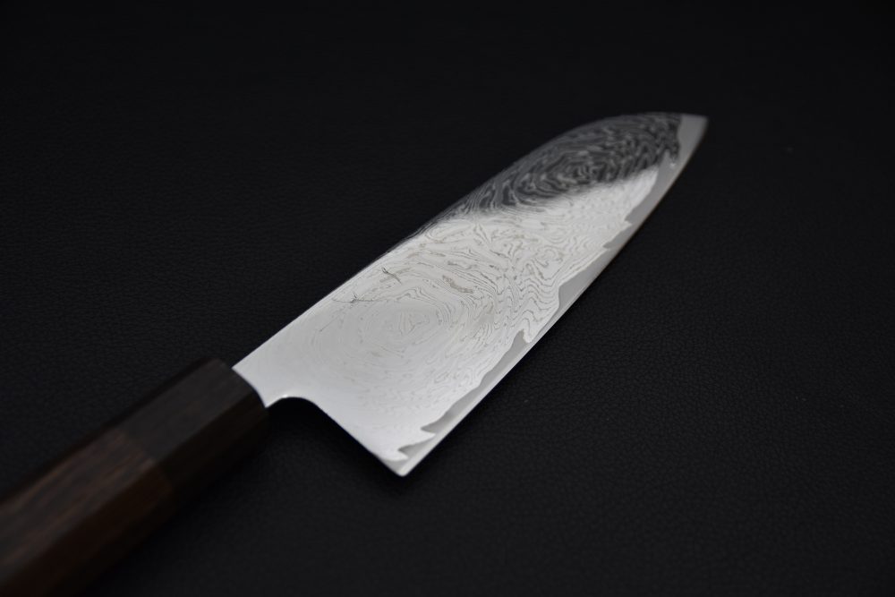 L’AUS-10 est un acier comparable à l’acier VG-10. Il se démarque par une meilleure résistance à l’usure, mais il atteint une dureté légèrement moins élevée. Il aura moins tendance à briser en subissant des chocs et des mouvements de torsion que la moyenne des aciers japonais. Il y a cependant plus de chances que l’acier se plie ou se torde. C’est donc l’acier parfait pour des couteaux que l’on suggère aux personnes qui ont moins d’expérience avec les lames japonaises.