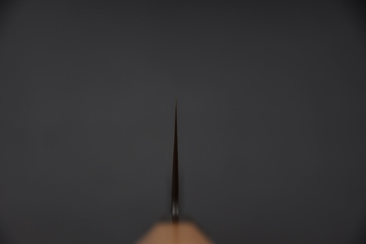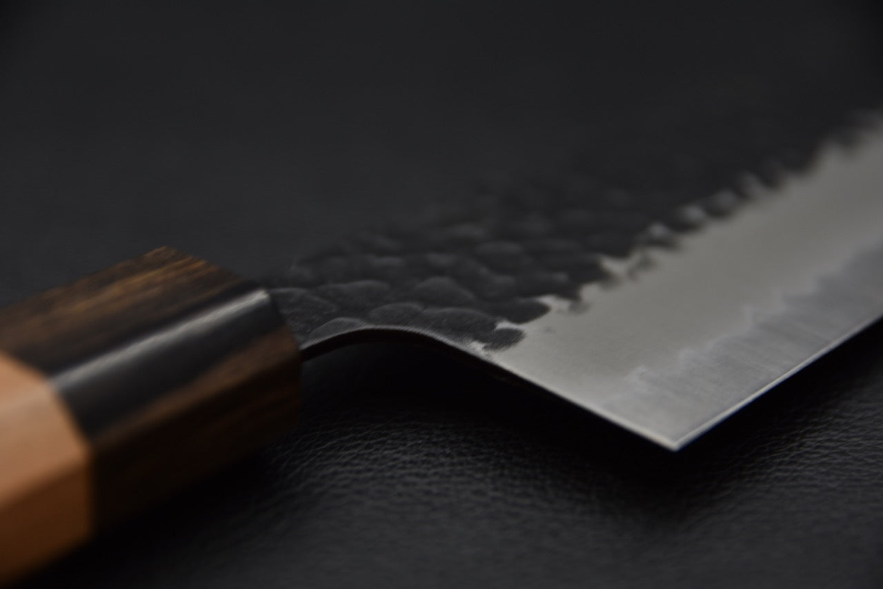 La lame est forgée à Tosa (préfecture de Kōchi) à partir de l’acier Aogami Super (ou "Acier Bleu Super"), fabriqué par Hitachi Metals Ltd. Cet acier carbone haut de gamme contient plus de carbone, de chrome, de tungstène et de molybdène que les autres variantes d’Aogami. Cela lui confère :