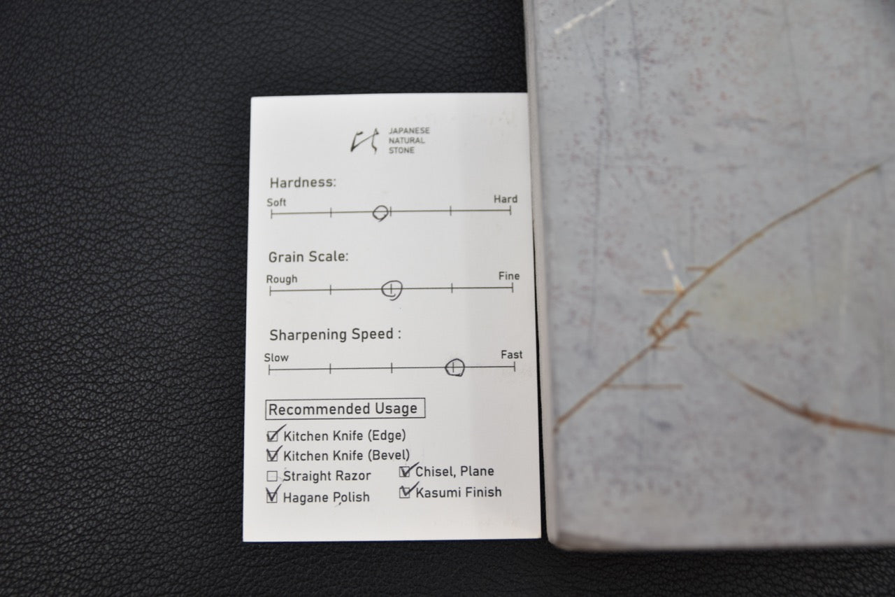 Utilisation recommandée : Couteau de cuisine (tranchant), Couteau de cuisine (biseau), Ciseau, Rabot, Hagane Polish, Kasumi Finish