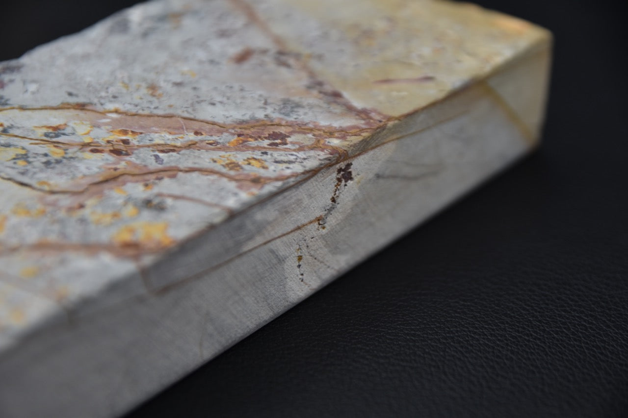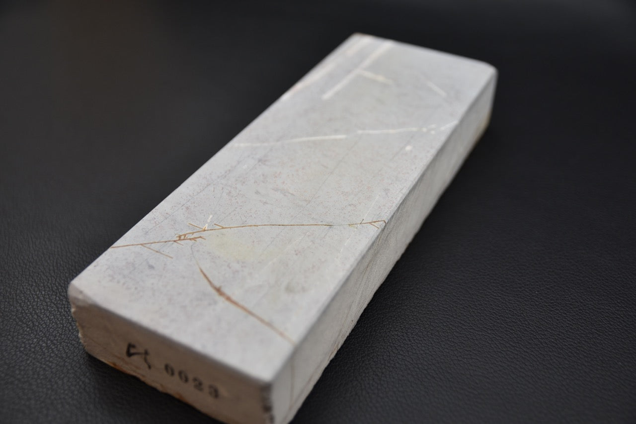 Les pierres Uchigumori, réputées pour leur rôle indispensable dans les processus de polissage des sabres japonais et des couteaux de cuisine japonais traditionnels haut de gamme, sont des trésors exclusifs que l'on ne trouve que dans les mines de Mizukihara et d'Ohira, à l'ouest de Kyoto. Ces pierres, qui proviennent de la couche Tenjyo Suita de la strate Hon-Kuchi Naori, sont essentielles pour obtenir la finition kasumi tant convoitée sur l'acier Tamahagane, mettant en évidence leur capacité inégalée à améliorer à la fois la qualité esthétique et fonctionnelle des lames. Disponibles en variétés tendres (Hato) et dures (Jito), les pierres Uchigumori occupent une place particulière dans le cœur des Togishi (polisseurs de sabres) et des experts culinaires, car elles sont appréciées pour leur capacité unique à aiguiser et à polir les lames japonaises traditionnelles avec une précision inégalée. Malgré leur nature plus douce, généralement considérée comme moins idéale pour l'aiguisage, ces pierres sont célébrées pour leur efficacité à affiner et à accentuer le caractère des lames japonaises traditionnelles. L'exclusivité des pierres d'Uchigumori, que l'on ne trouve que dans les mines de Mizukihara et d'Ohira, ainsi que leur lien profond avec les traditions artisanales japonaises, les élèvent au rang de ressources très recherchées et coûteuses, incarnant la fusion de l'élégance naturelle, du savoir-faire artisanal et de l'héritage culturel dans le domaine de l'art de la lame japonaise.
