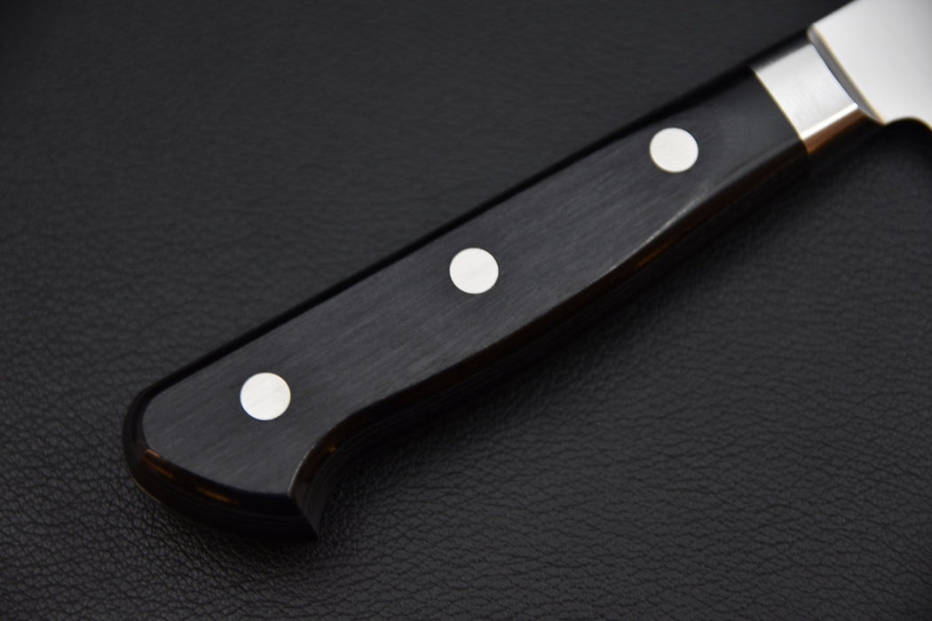 Alliant précision artisanale et durabilité, le couteau Santoku 170mm de la gamme T10 par Hitohira incarne l’élégance fonctionnelle de la coutellerie japonaise contemporaine. Sa lame en acier V10 spécial révèle un aspect migaki minimaliste et raffiné. Pensé pour les découpes polyvalentes (légumes, viandes, poissons), ce Santoku se distingue par son équilibre naturel et sa prise en main confortable. Le manche en Pakka, riveté de manière classique, assure robustesse et résistance à l'humidité, idéal pour un usage intensif en cuisine. Ce couteau reflète la rigueur et la finesse du savoir-faire japonais.