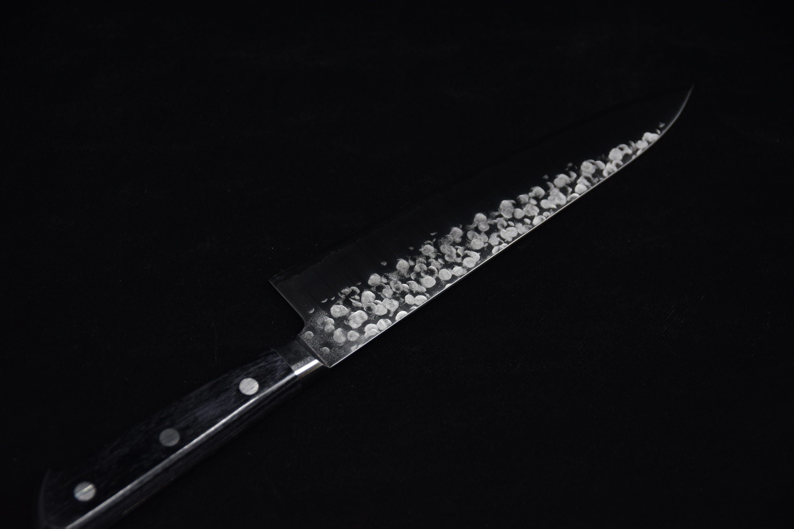 Le VG-10 est un acier inoxydable produit par Takefu Special Steel au début des années 60 et est toujours d’actualité plus de 60 ans après. Cet acier a été spécialement conçue pour la fabrication de couteau et il est utiliser par plusieurs maîtres forgerons du Japon. Malgré les 15% de chrome dans la composition qui confère une résistance à la corrosion élevée, le VG-10 peut atteindre un HRC de 60-61. Ceci s’explique grâce à l’addition de 1,5% de Cobalt qui offre à l’acier une dureté plus élevée avec un traitement de trempe à haute température.