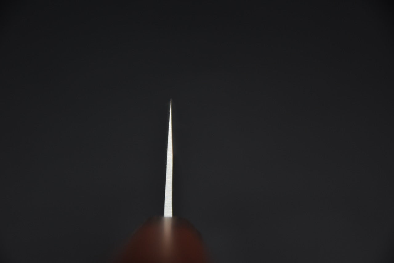 Expliqué simplement, l’Aogami #2 développé par Hitachi Metals est un acier fabriqué à partir de Shirogami #2 dans lequel on ajoute un peu de chrome et de tungstène pour une meilleure durabilité et une plus grande résistance à la corrosion. En plus de ça, la teneur en carbone plus élevé de l’acier permet d'obtenir une meilleure rétention de coupe. Objectivement, l’Aogami #2 est une amélioration par rapport au Shirogami #2. Pour les amateurs de patine par contre, l’acier Shirogami est plus réactif à l’oxydation et se pourrait un avantage.