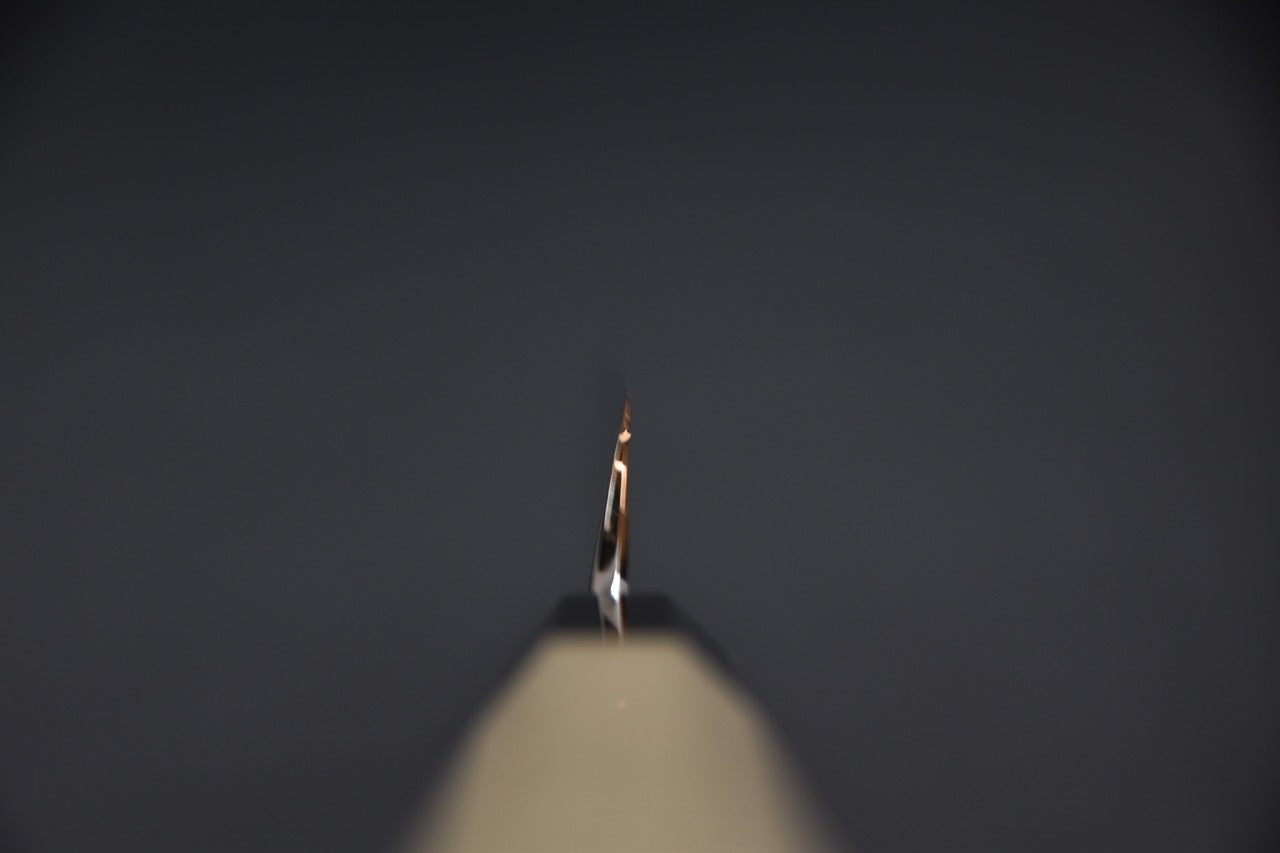 Son manche en bois Ho parfaitement équilibré épouse la main dans un geste naturellement fluide, rendant les découpes plus agréables et prolongées sans fatigue. La finition Tachi, fine et effilée, confère un plaisir tactile intense à chaque mouvement.