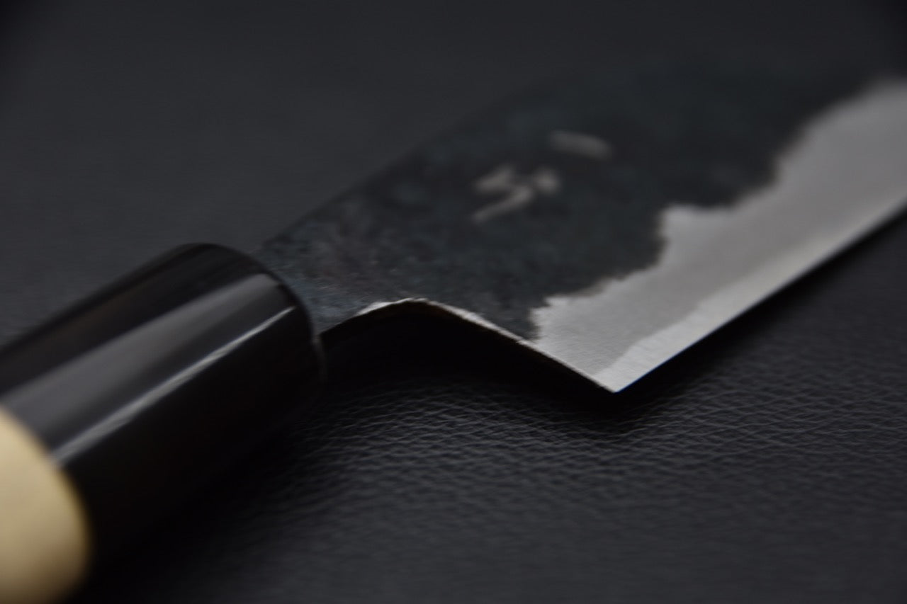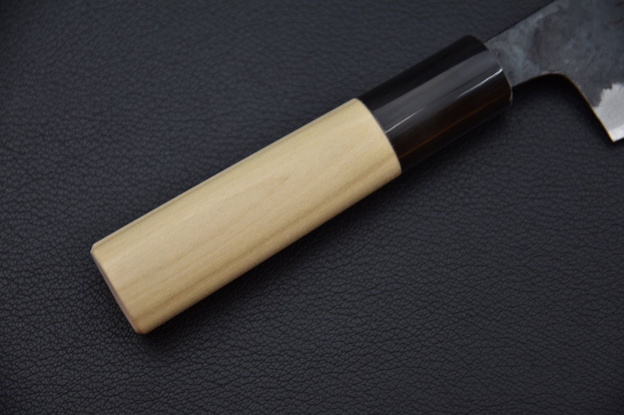 Le manche en bois de Ho (magnolia japonais) avec col en résine foncée assure une prise en main légère, confortable et bien équilibrée — parfait pour les gestes fins du quotidien.