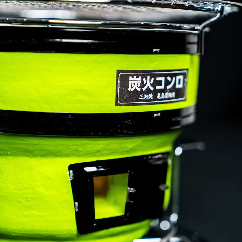 Le Gril Mikawa est un shichirin noir à double couche, mais aujourd'hui, la production de shichirin a évolué au fil du temps pour se concentrer davantage sur la facilité d'utilisation et l'apparence. La forme rectangulaire facile à utiliser, la variété des couleurs et la plaque de fer qui entoure l'extérieur facilitent le nettoyage. Le shichirin est appelé Konro dans cette région, mais les performances et les produits sont les mêmes que ceux du shichirin.