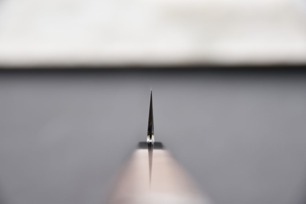 Myojin est un affûteur incroyablement talentueux et possède plus de 10 ans d’expérience dans l’industrie des couteaux. Pendant ce temps, il a également suivi une formation de forgeron, ce qui, selon lui, l’aide à mieux comprendre l’aiguisage.