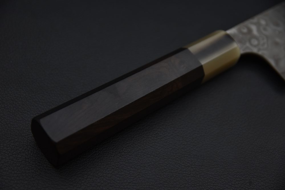 Artisan créatif, Go Yoshizawa fait rayonner l’entreprise familiale. Il est le chef de la forge de Nigara, l’une des forges les plus reconnues au Japon et mondialement, et célèbre pour le travail du damascus. Yoshizawa-san s’appuie sur des bases solides du travail de l’acier qu’il a développées au fil des années afin de découvrir et d’explorer de nouveaux procédés. La forge de Nigara et ses artisans-forgerons continuent de nous épater en nous offrant des couteaux aussi beaux que performants.