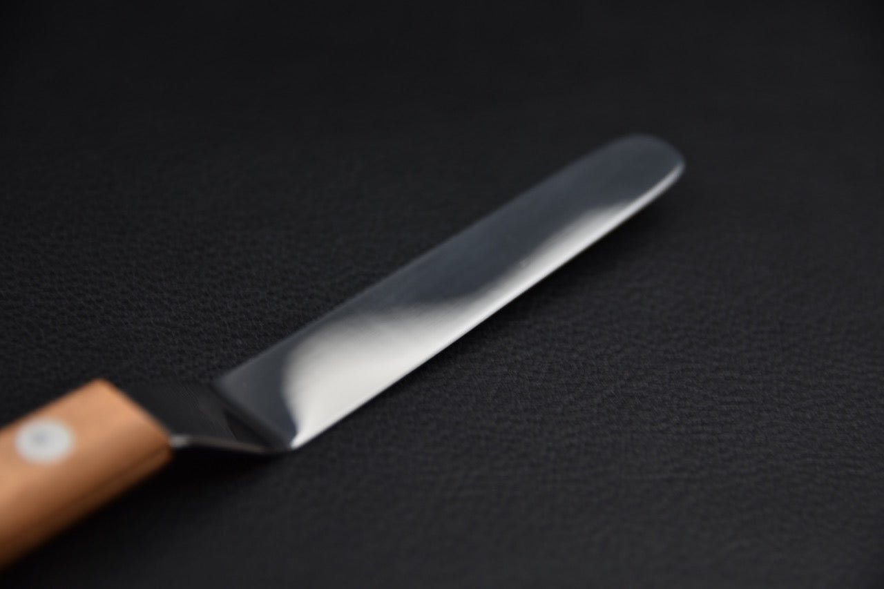 La spatule de dressage Sekishin S (#2L) incarne la simplicité fonctionnelle alliée à l’élégance japonaise. Sa lame droite en acier inoxydable, à l’extrémité arrondie, permet d’étaler, lisser ou manipuler avec précision divers éléments en cuisine. Particulièrement utile pour le dressage des purées, crèmes ou sauces, elle facilite un geste fluide et contrôlé. Son manche en bois de rose, à la fois sobre et chaleureux, assure une prise en main confortable et naturelle. Idéale pour les professionnels en quête d’outils fiables, pensés pour durer, issus d’une tradition japonaise exigeante.