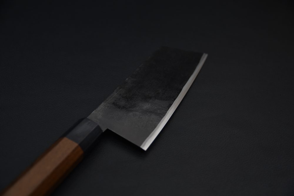 Takeda san a travaillé à perfectionner l’un des aciers les plus difficiles à forger pour un forgeron. L’acier Hitachi Blue Super possède l’une des meilleures rétentions de tranchant de tous les aciers. Takeda est considéré comme l’un des rares fabricants de couteaux à maîtriser ce matériau et continue de progresser.