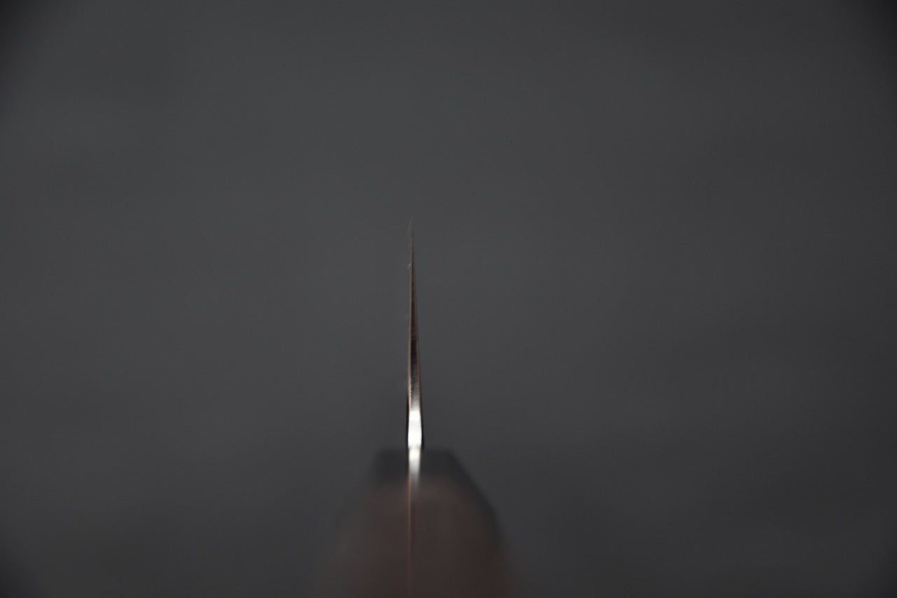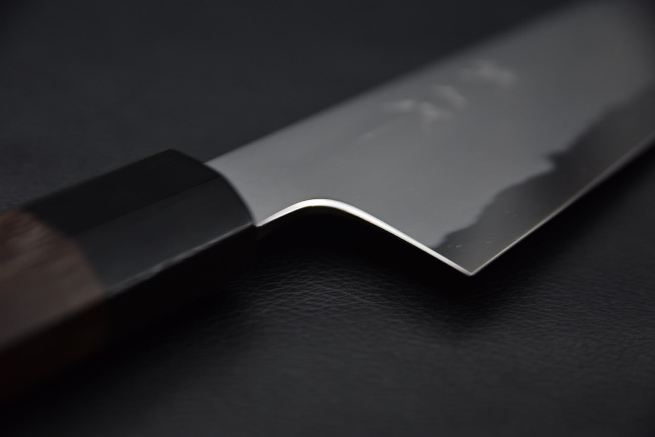 Le Kiritsuke Gyuto est un croisement entre le kiritsuke traditionnel et le gyuto. Le profil du tranchant, généralement plus droit, et sa pointe coupée s’apparentent au kiritsuke alors que son double biseau est caractéristique du gyuto. Le Kiritsuke Gyuto fait office de couteau de chef dans votre cuisine et peut effectuer la majorité des tâches. On le retrouve habituellement entre 210 et 270 mm.