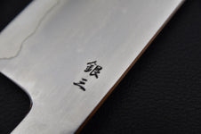 Le Ginsan est un acier très similaire au Shirogami 2 dans sa composition. Un ajout de 14% de chrome permet d’obtenir un acier inoxydable contenant peu d’impureté. Ainsi, les lames forgées en Ginsan possèdent une dureté élevée et une capacité de rétention de coupe qui rivalisent avec la plupart des lames en aciers à haute teneur en carbone traditionnel. La pureté du Ginsan en fait un acier de prédilection pour les forgerons qui travaillent l’acier selon les méthodes ancestrales et qui est agréable à aiguiser.